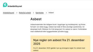 Regler for asbest har fra 21. desember 2025 blitt tydeligere. I BevarHMS er rutine i HMS-håndbok oppdatert og det er lagt inn en ny regelverksendring for årlig gjennomgang.