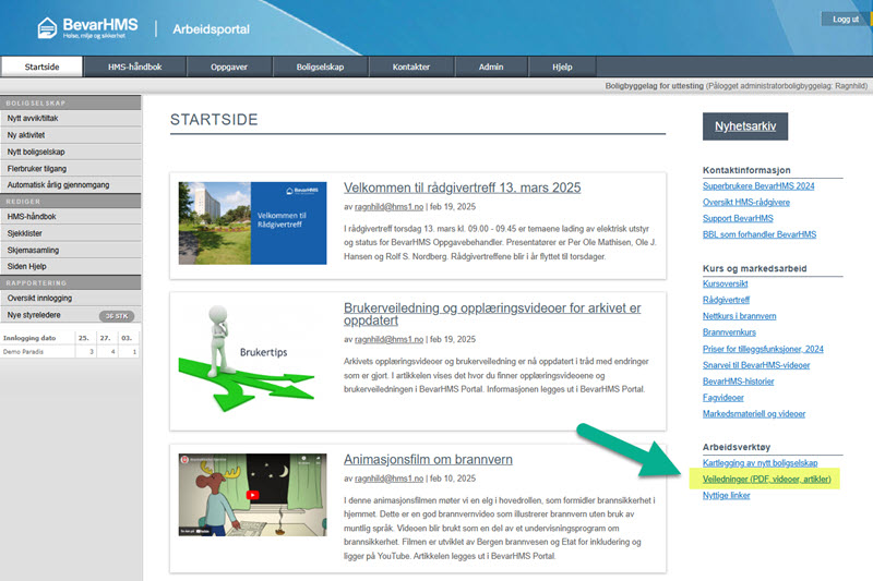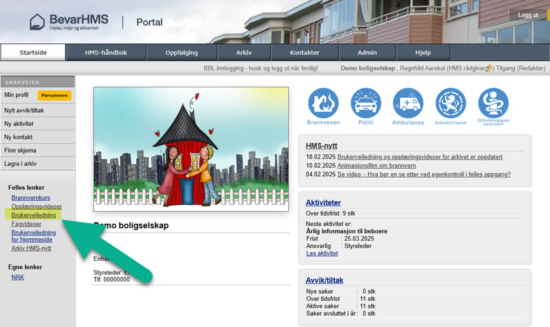 BevarHMS Portal startside > Felles lenker > Brukerveiledning