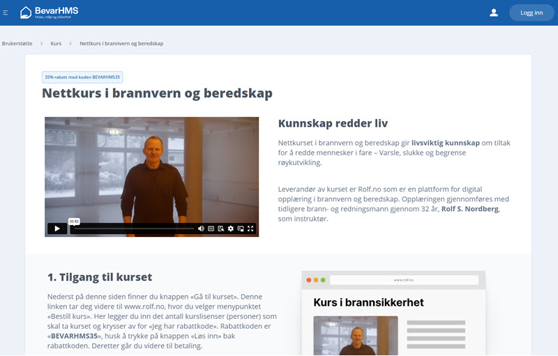 Leverandør av kursert er rolf.no som er en plattform for digital opplæring i brannvern og beredskap. Opplæringen gjennomføres med tidligere brann- og redningsmann gjennom 32 år, Rolf S. Nordberg, som instruktør.