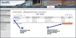 4. Det kan nå sendes ut passord til flere brukere samtidig fra Admin /Brukerregister, se bilde 2.