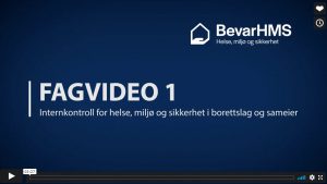 Nytt fra oss i BevarHMS er at vi er i gang med å lage fagvideoer. Temaet på vår første video er "Internkontroll for helse, miljø og sikkerhet i borettslag og sameier". Videoen varer i 3,5 minutt. Vi ser for oss at den kan være nyttig for ferske styremedlemmer, men også for mer erfarne styremedlemmer som ønsker en oppfriskning på temaet.