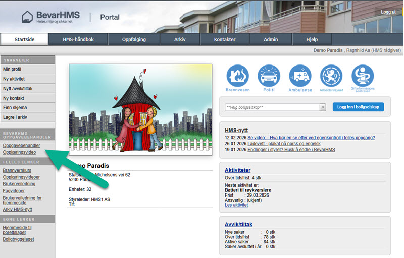 Gå direkte til Oppgavebehandleren fra BevarHMS Portal