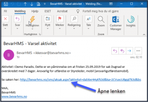 1. Først åpner du lenken i varselet du har fått, enten på mobil eller e-post