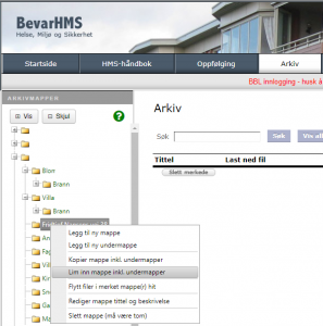 Ny funksjonalitet gjør det nå mulig å etablere en mappestruktur (mapper og undermapper) for eksempelvis et bygg, et utstyr et. Deretter kan denne mappestrukturen kopieres og limes inn for flere bygg, utstyr et.
