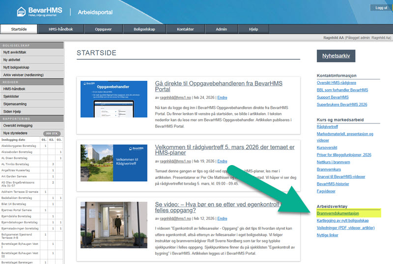Nå finner du på startsida til Arbeidsportalen lenke til brannvernbok. Denne er utarbeidet av BevarHMS og inneholder dokumentmaler for utfylling, inkludert veiledning. Filene er i formatet Word og nummerert i henhold til innholdsfortegnelsen. Er det spørsmål til utfylling av brannverndokumentasjon, ta gjerne direkte kontakt med brannvernrådgiverne i BevarHMS, eller still spørsmålet via BevarHMS supportportal. Har du forslag til endringer av dokumentmalene, gi oss gjerne beskjed.