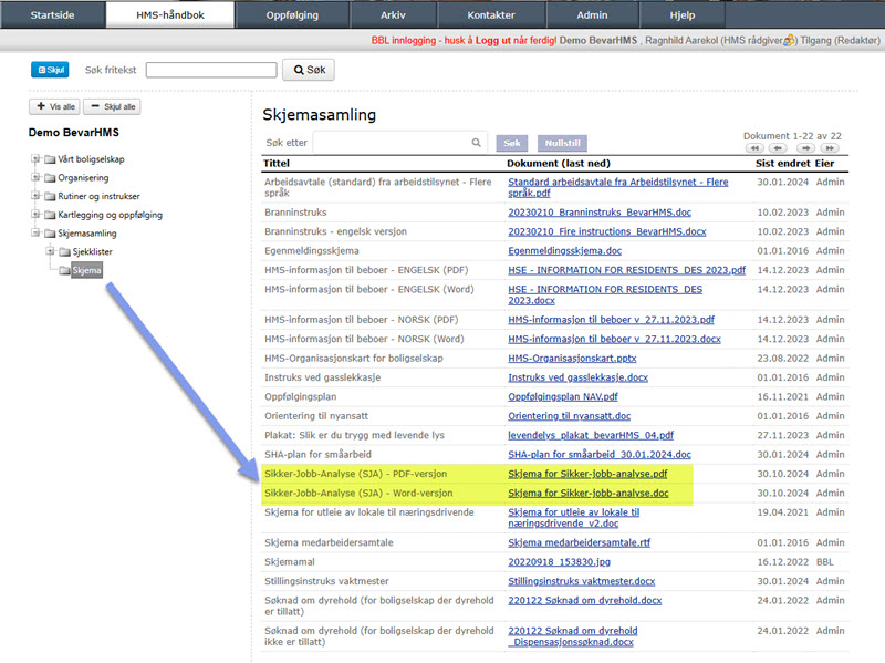 Skjema finner du i skjemasamlingen i HMS-håndbok, se bildet nedenfor. Det finnes både i word og pdf-format.