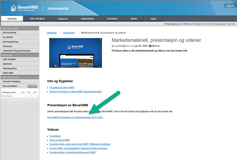 PowerPoint-presentasjonen av BevarHMS er oppdatert. Denne benyttes til opplæring i programmet. Du finner presentasjonen på siden "Markedsmateriell, presentasjoner og videoer". Det er bare til å laste ned og tilpasse den slik du selv ønsker det.