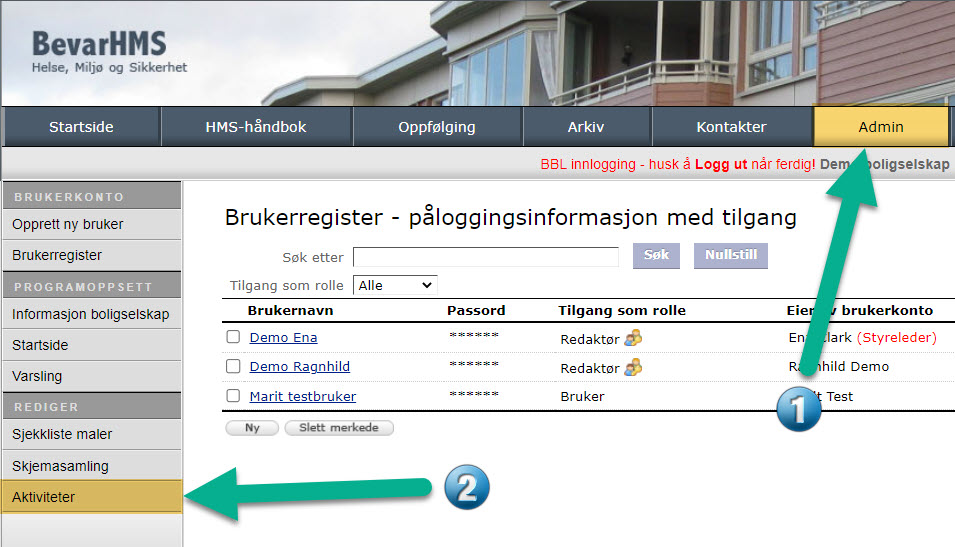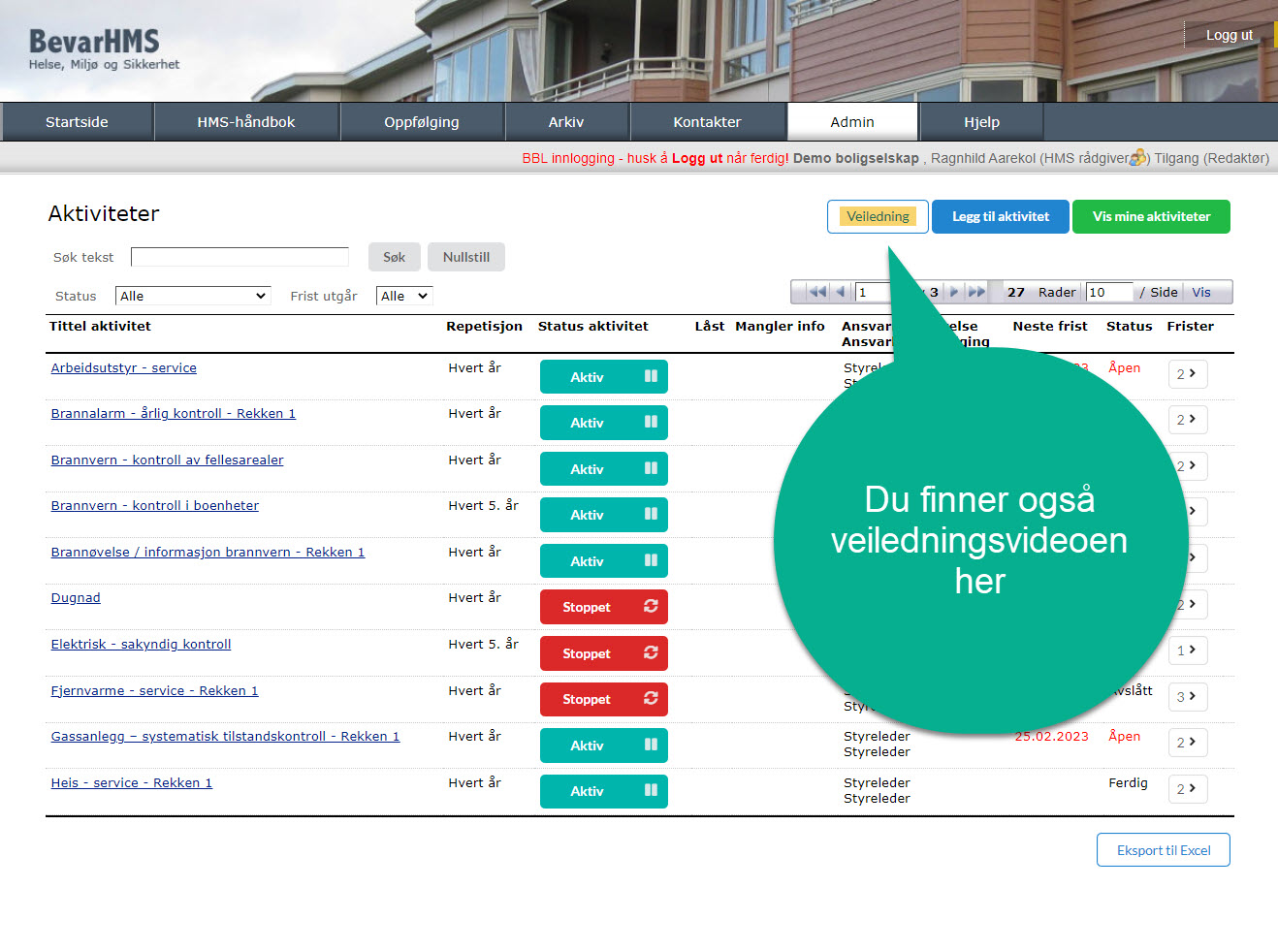 I BevarHMS har vi en tilleggsfunksjonalitet for redigering av aktiviteter. Du må ha rolle som «Redaktør» som får tilgang til dette. Her kan du aktivere, deaktivere, slette og redigere aktiviteter. I videoen nedenfor gis det veiledning til hvordan dette gjøres.