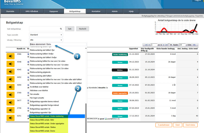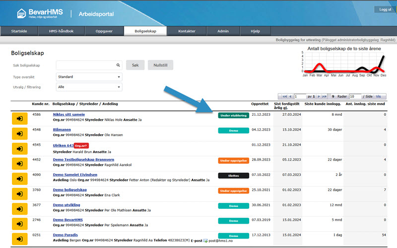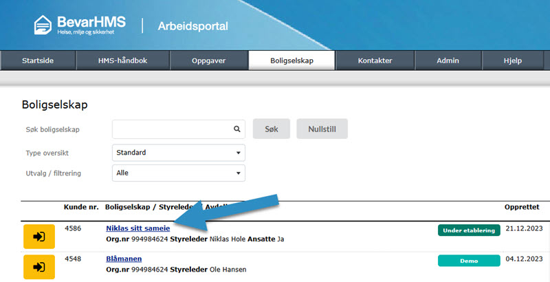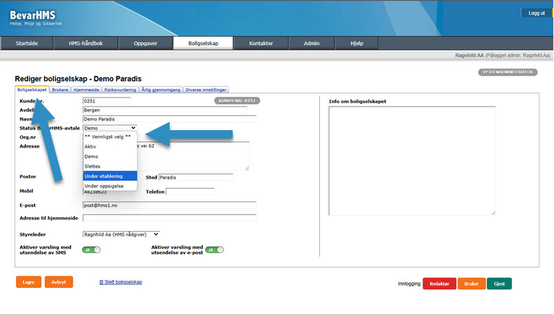 2 Under fana "Boligselskap" velger du status. Husk å lagre.